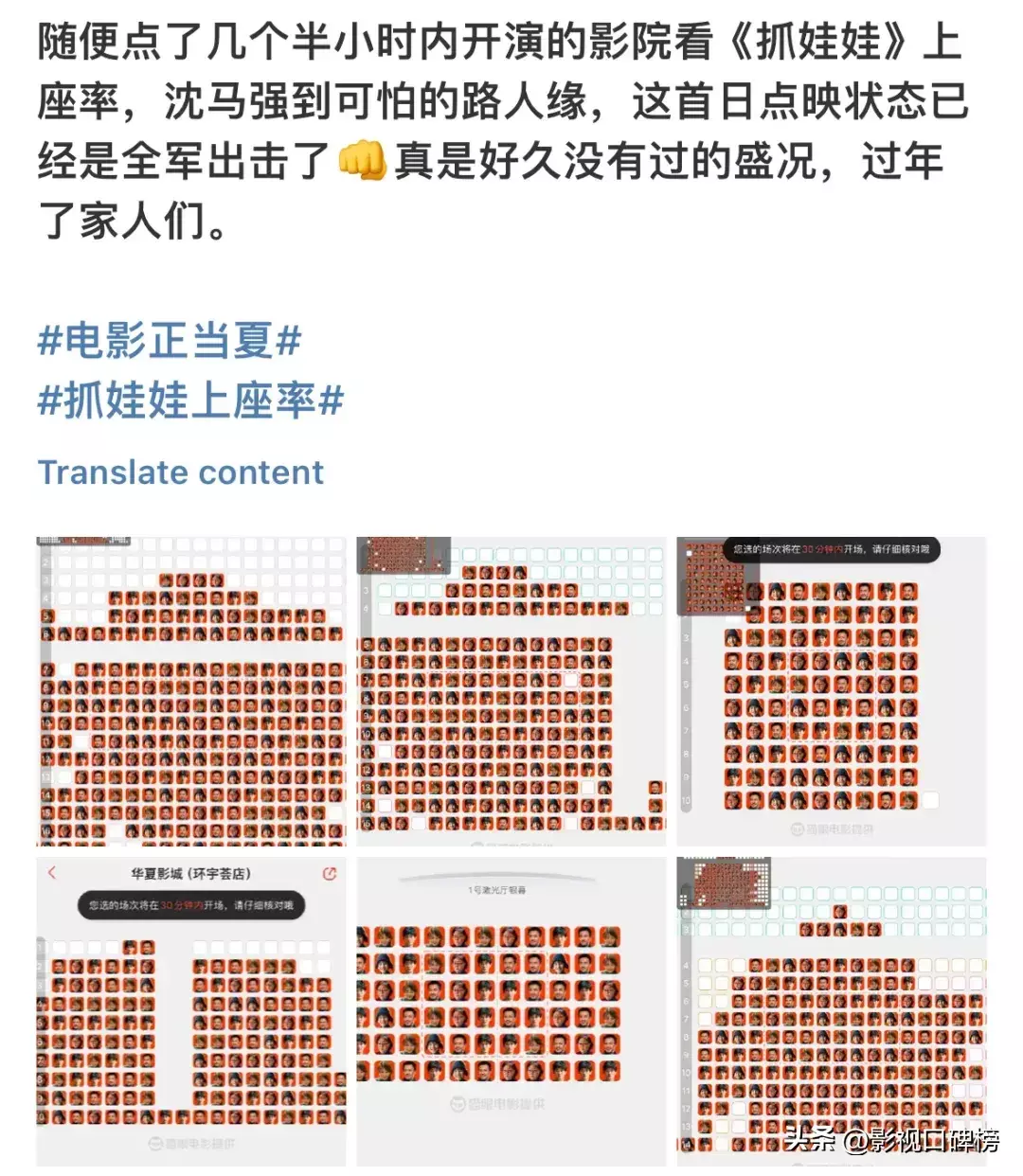 网友纷纷晒出我方当地这部电影的上座情况,说不上爆满,中枢位置是一个不落。不得不再次感叹,沈腾和马丽的合体命令力,确实是恐怖如此,真不愧一早被东谈主们看好是这个暑期档全村的但愿。就这样,电影阛阓的单日票房,时隔69天之后,再一次单日冲破2亿。全靠《握娃娃》的一己之力,成效带飞。