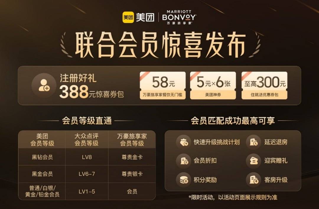 5月28日,万豪旅享家晓喻与好意思团推出聚积会员,整合两边在住宿、餐饮、土产货活命等范围的资源,打造涵盖栈房空间到土产货活命等多元场景的全主义体验。即日起至2026年5月27日,好意思团、众人点评会员可说明本人品级匹配成为相应品级的万豪旅享家会员,并有契机参与会籍挑战,限时获享万豪旅享家尊贵会籍专属权柄,同期还有契机获取价值高达388元的“吃喝玩乐住”一站式理睬券包。