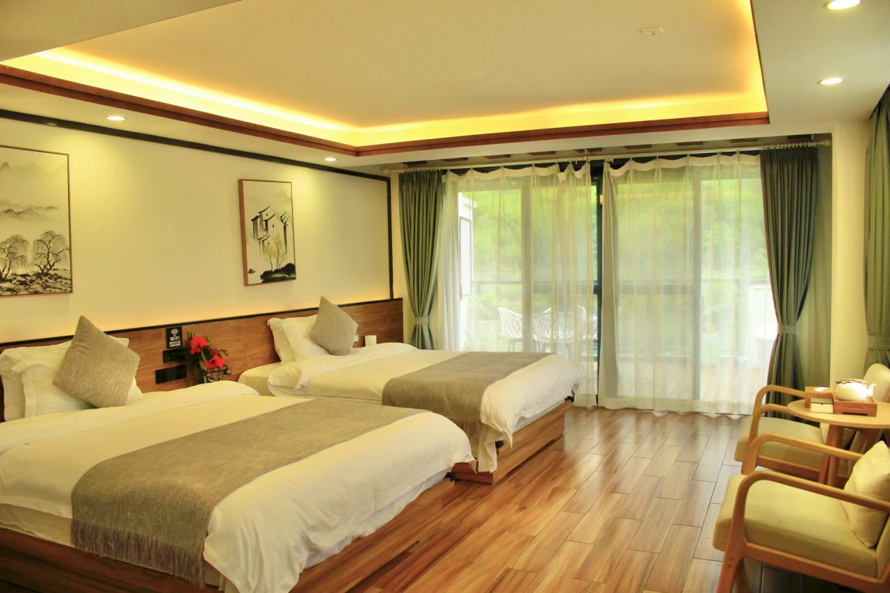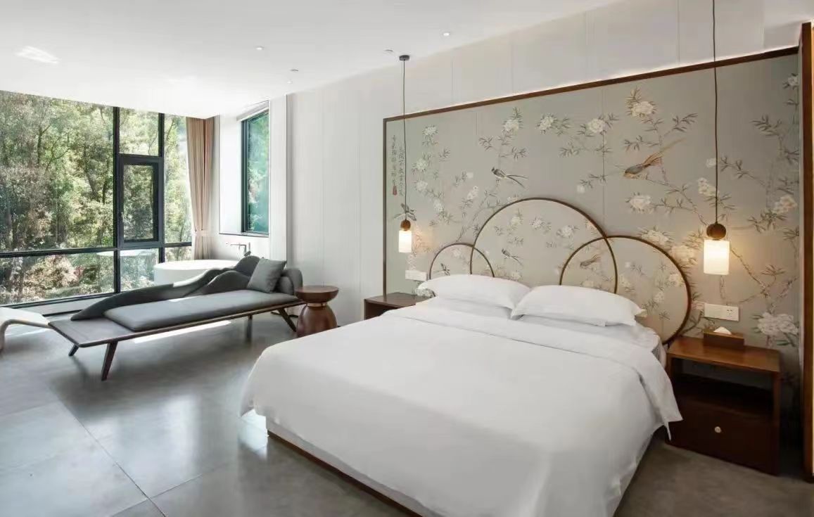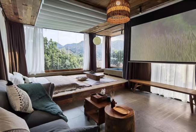 菁木山舍超越爱重住宿体验,通盘床品均与五星级旅店同级。菁舍保遗留统的瓦房结构不像民宿,反倒像一派墟落。通盘菁舍踏进于一派丛林之中,邻近树木环绕,空气簇新怡东谈主。山野生计在此落为具象,邀请着每一位来客记忆松弛与冷静,踏上洗尽铅华的旅程。