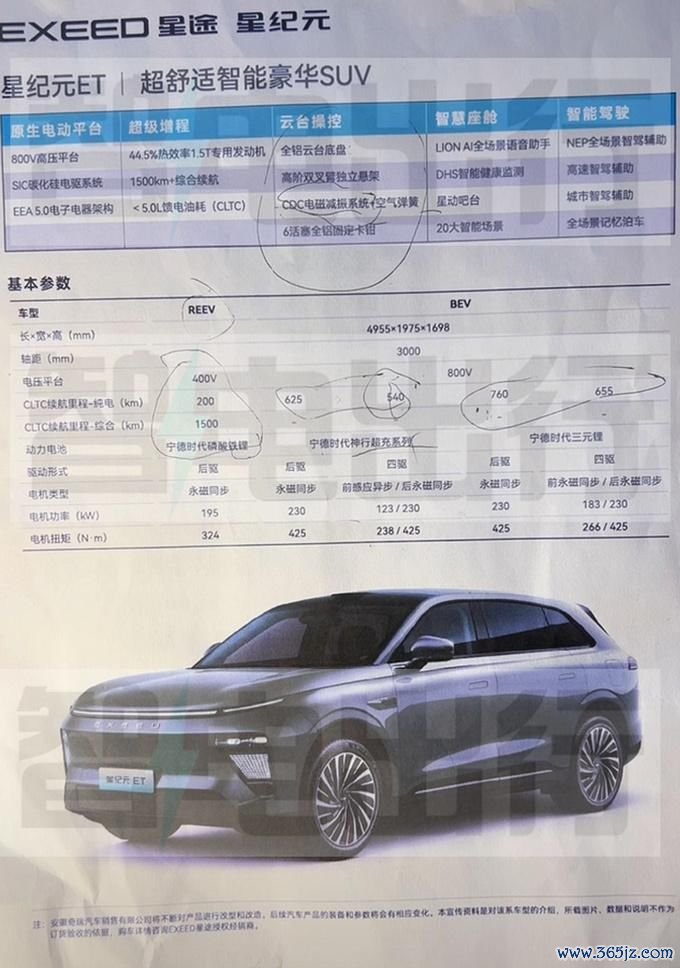智电出行得回到星途星纪元ET的疑似建立图及预售价钱,分为1款增程车型及4款纯电车型,增程版收受400V电压平台,CLTC纯电续航里程200km。纯电版全系收受800V电压平台,CLTC最高纯电续航760km,配备空气悬架+CDC可变阻尼。