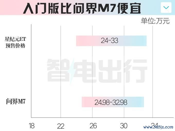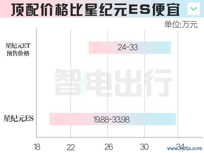 从星纪元ET的实拍图来看,其车顶上方放手了24万元-33万元的预售价钱区间,顶配车型比星纪元ES低廉,将于4月15日开启预售。