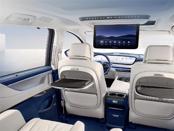 车内配备连系式曲面中控大屏,后排提供顶置文娱屏幕,第二排配备有小桌板,还盘算推算有灵动岛台,内置冷暖箱、杯托、无线充电等功能,后舱屏幕撑握触屏和遥控器操作、蓝牙/WiFi连合、安卓和iOS无线投屏功能。