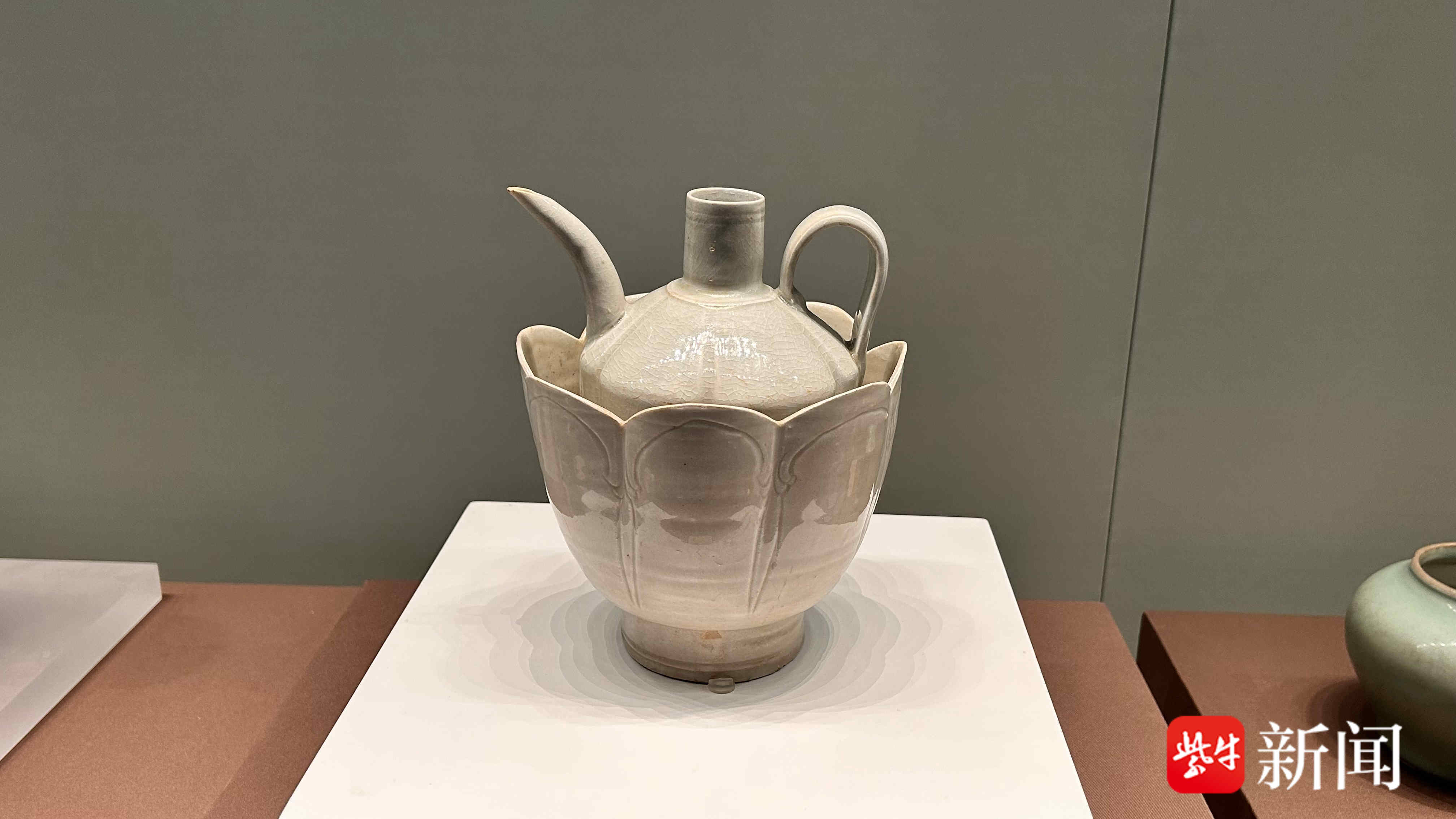 青瓷的青色来自铁元素,南京不雅众对六朝时辰盛产的青瓷思必不生疏。而在六朝之后,青瓷这一品类也仍然佳作频出。展览中,一件来自安徽博物院的宋代景德镇窑青白釉注子温碗由注子和温碗搭配构成,在温碗中灌入开水可使注子中的酒保温。这件宋代的“保温壶”其青白瓷釉色如玉似冰,造型荒谬别致。群众先容,青白瓷是一种釉色介于晋、白之间、白中闪青的瓷器,也称作“影青”。宋元时辰,分娩青白瓷的窑口较多,其中以景德镇窑为代表。