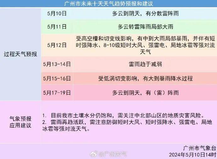 瞻望5月13日-15日,中层波动趋活跃,南风辐合,雷雨仍较彰着。5月15日广州将发生下一场天气经过。