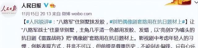 这种对历史环境的严重失真,完全消解了抗战时刻的贫寒和严肃。 更为要津的是,改动先烈以身殉职相通的和平,却被这群无底线的创作家们魔改成“偶像剧”。 这种顽抗战“戏化”的惩处,无疑是对改动先烈和历史的极大不尊重。 东说念主民日报更是径直发文品评“别把偶像剧套路套用在抗日题材上”“不尊重历史”等。 在官方和全网的品评下,这部剧很快就被下架。