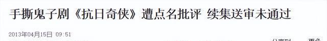 新闻晨报——手撕鬼子剧《抗日奇侠》遭点名品评续集送审未通过