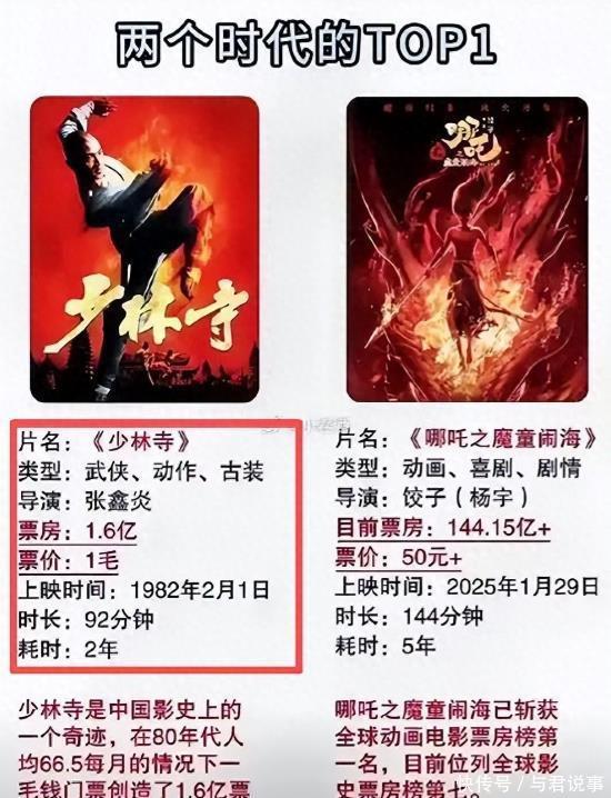 “不可想议的遗迹” 人人都说《哪吒2》是票房遗迹,是中国东说念主的骄横, 但事实上,33年前的那部《少林寺》,才是中国影史上真实的遗迹,想必今后都无东说念主能特地。 阿谁年代,电影票唯独1毛钱,可它愣是创下1.6亿票房的惊天记录。