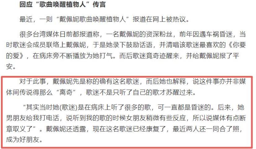 其家属每天齐在病床前播放戴佩妮清唱的《你要的爱》。