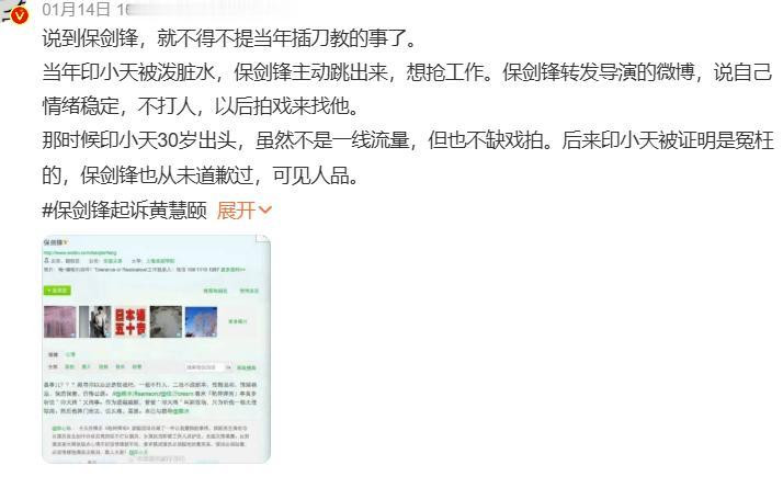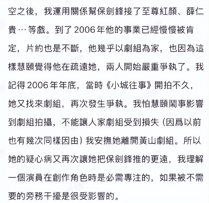 圈内有两个东谈主站出来关怀他,他昔日的牙东谈主蔡姐发了一篇长文,暗指黄慧颐太癫,至始至终没帮过保剑锋什么,还牵累他。