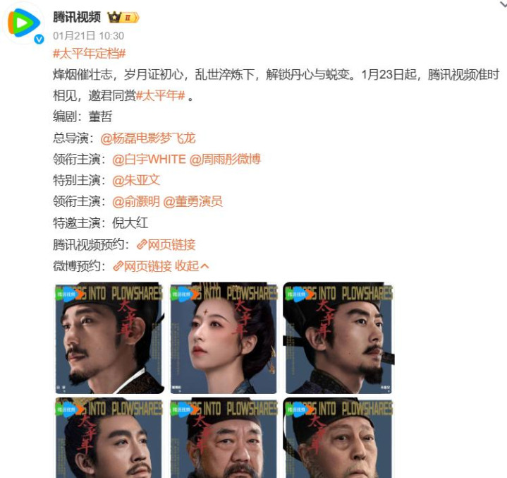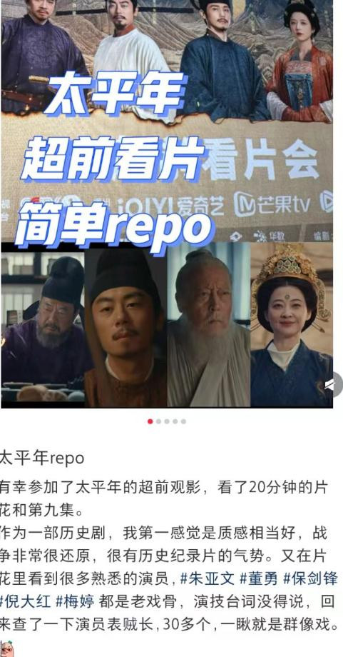 他的新剧《太平年》也顺利播出,并莫得被压剧。