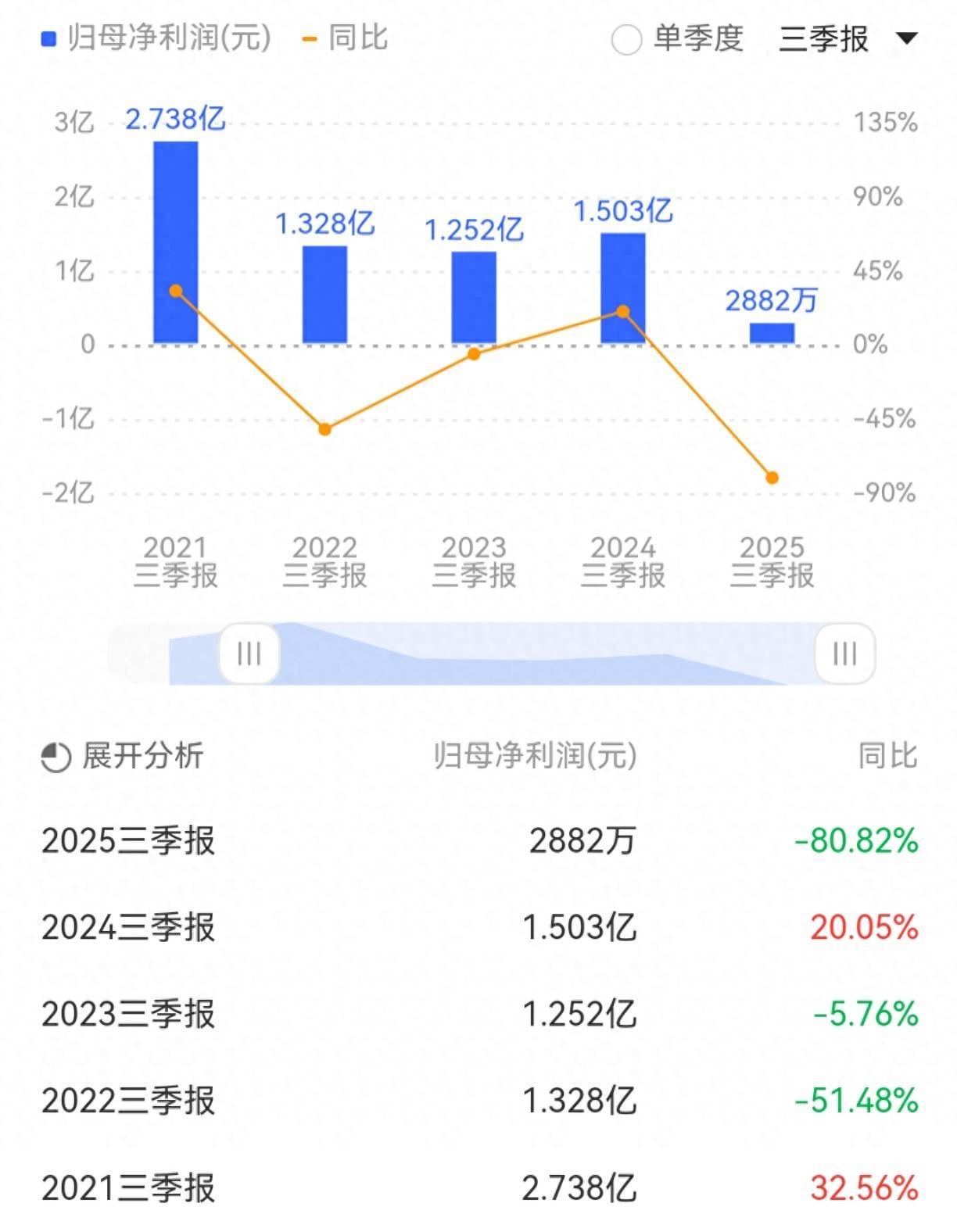 2025年前三季度,公司买卖收入为22.68亿元,同比下降1.6%;归母净利润为2882万元,同比下降80.82%,旧年同期为1.5亿元;扣非归母净利润为2558万元,同比下降81.69%。