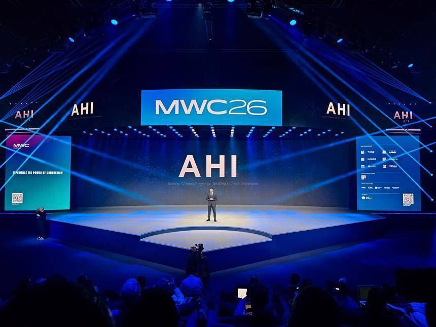荣耀CEO李健在2026年寰球挪动通讯大会主舞台发扮演讲。企业供图