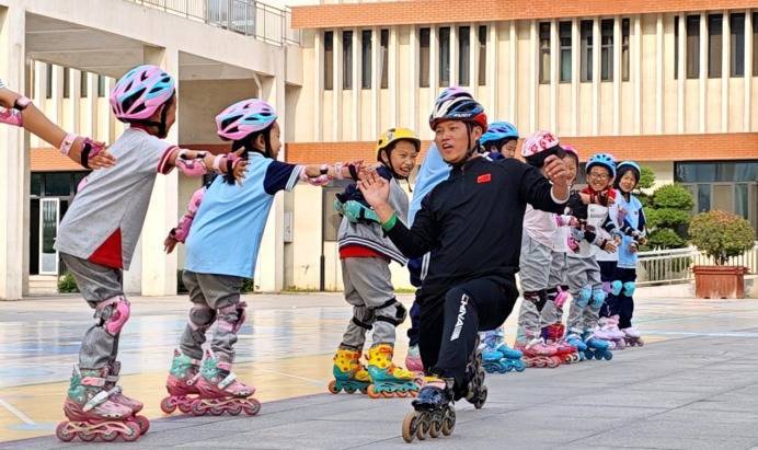 在淄博高新区第三小学,有一位很是的“编外体育证实”——国度健将通顺员、寰球速率轮滑冠军任卫士。他每周都会走进校园,为嗜好轮滑的孩子们带来系统、专科的推行提示。