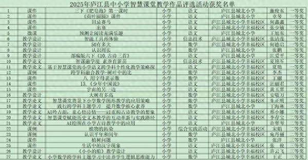 近日体育游戏app平台,2025年庐江县中小学聪惠课堂教诲作批评选获奖名单公布,庐江县城北小学喜获佳绩,共有27东谈主次获奖。